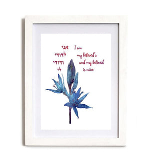 A beautiful, personalized Jewish wedding gift. The text reads: "I am my beloved's and my beloved is mine."